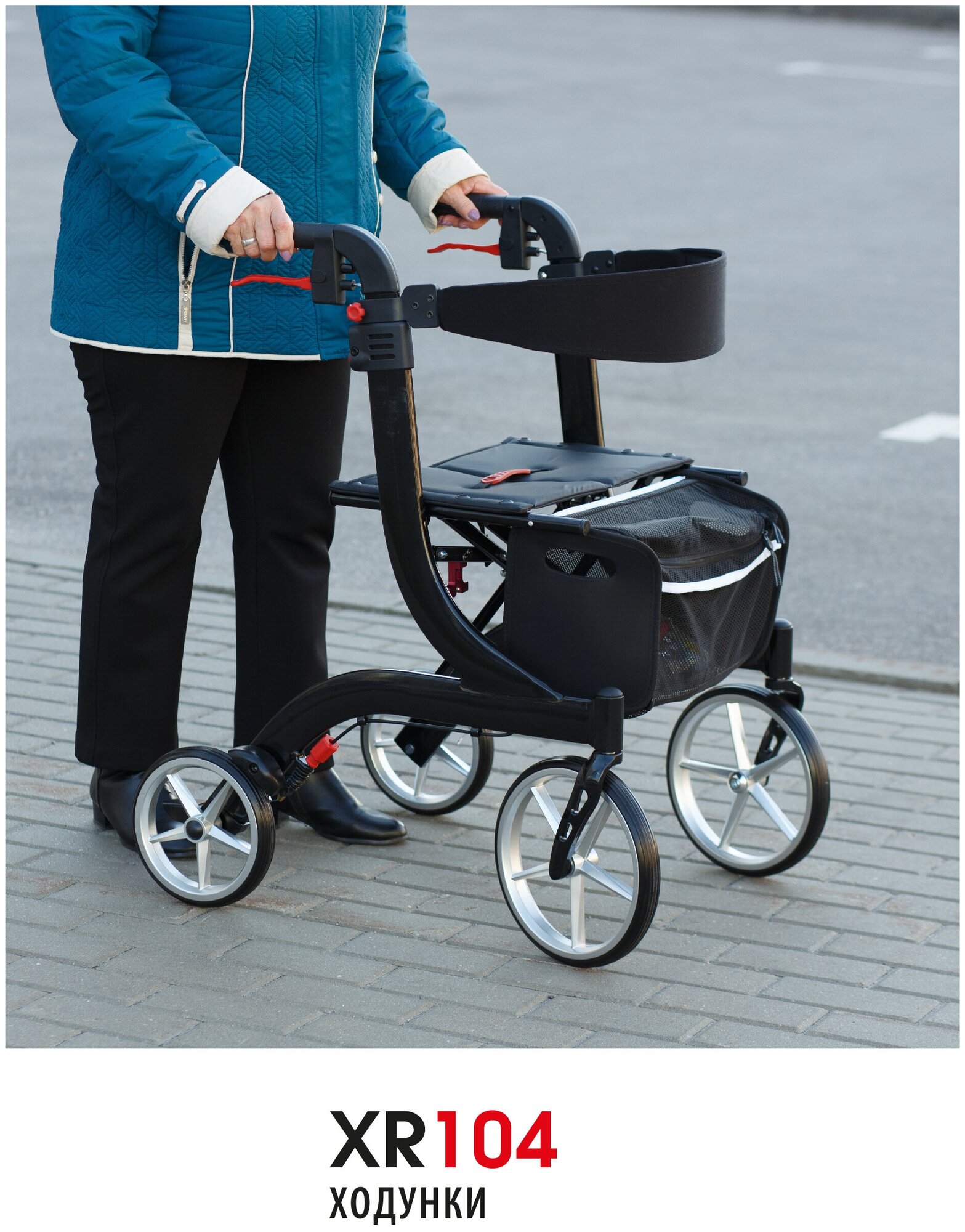 Ходунки-роллаторы Ortonica XR 104 для пожилых и инвалидов 4 колеса складные алюминиевые с корзиной регулируемые по высоте до 110 кг черные