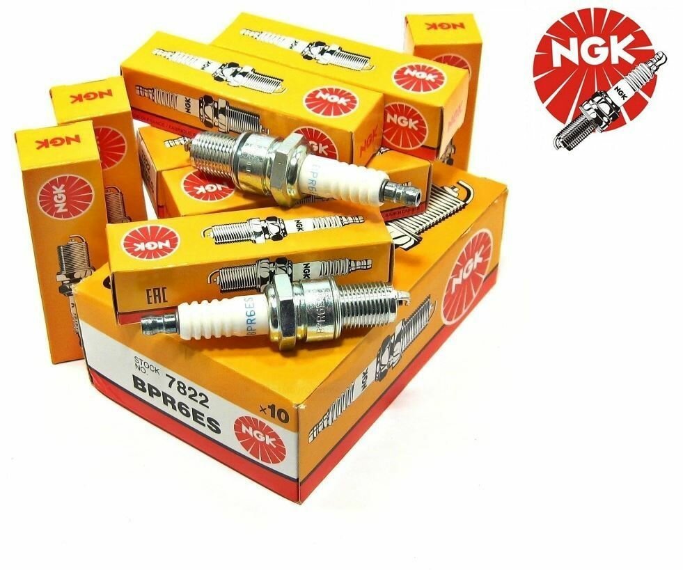 Комплект свечей зажигания NGK 7822 BPR6ES (4шт) для Lada Honda Nissan Mazda Suzuki Mitsubishi Isuzu Subaru Ford Kia Hyundai