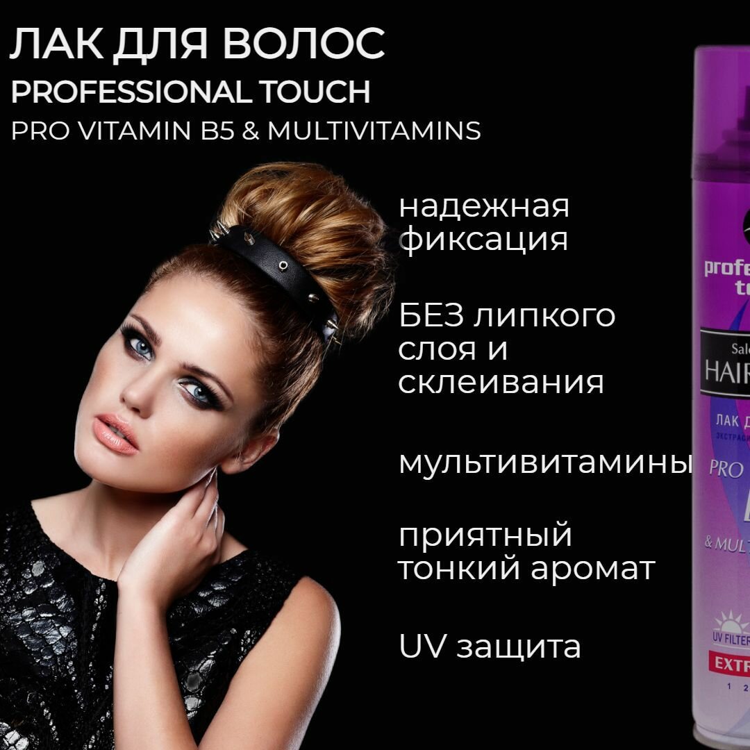 Купить Лак для волос Professional Touch PRO VITAMIN B5 & MULTIVITAMINS c ультрасильной фиксации для придания объема и укладки кудрей 265 мл Набор 2 шт