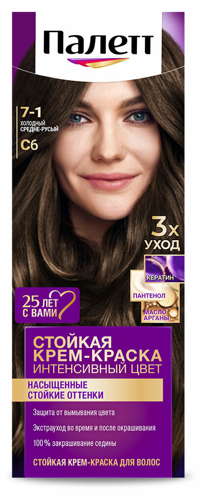 Купить Palette Стойкая крем-краска C6 (7-1) Холодный средне-русый, 110 мл
