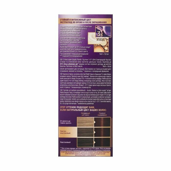 Краска для волос Palette, Палетт, Благородный каштан,100 мл,2 шт