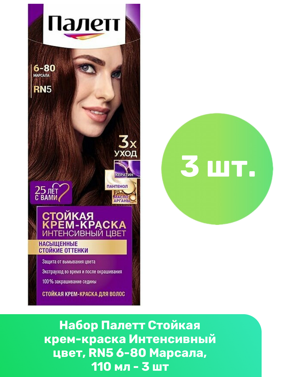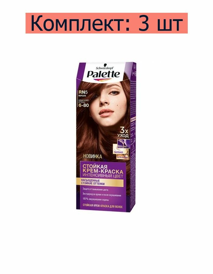Купить Стойкая крем-краска для волос Palette Интенсивный цвет, тон 6-80 (RN5) Марсала, 110 мл, 3 шт