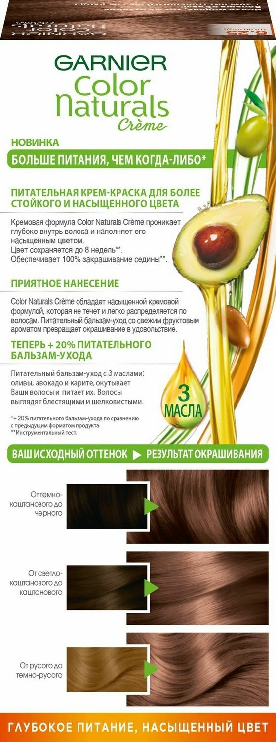 GARNIER Color Naturals стойкая питательная крем-краска для волос, 6 лесной орех/6.00 глубокий светло-каштановый