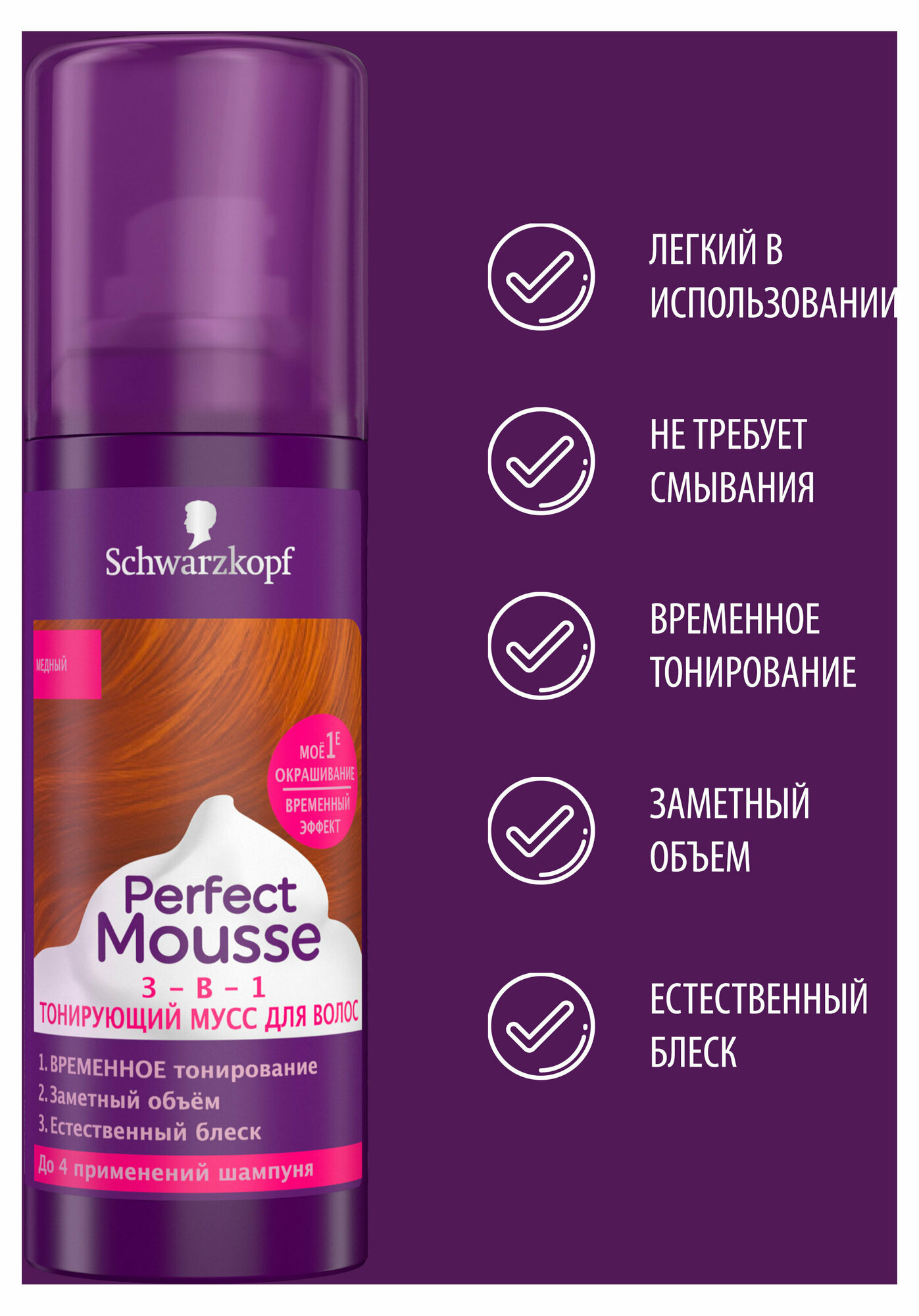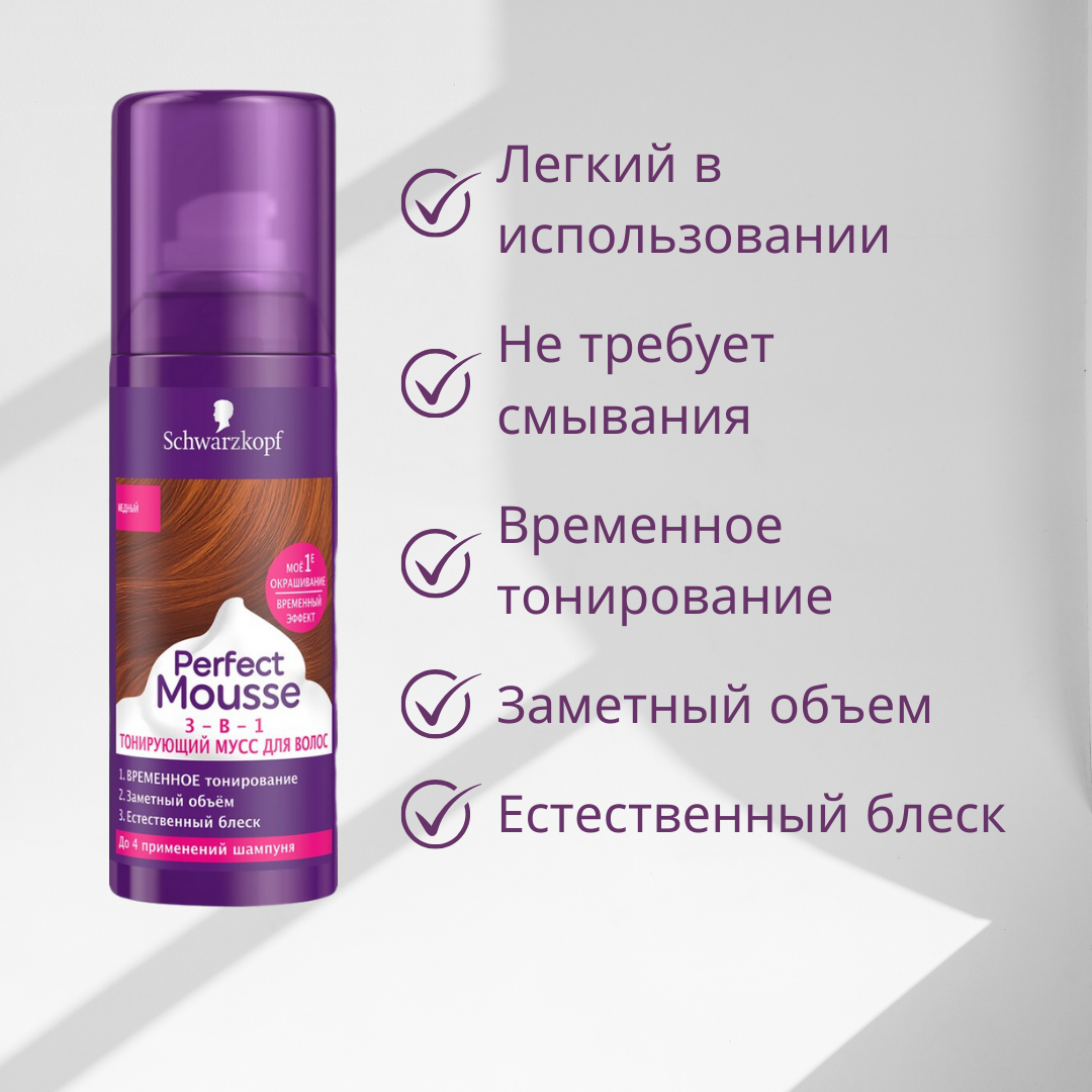 Perfect Mousse Тонирующий мусс 3-в-1, Медный, временное тонирование, 120 мл
