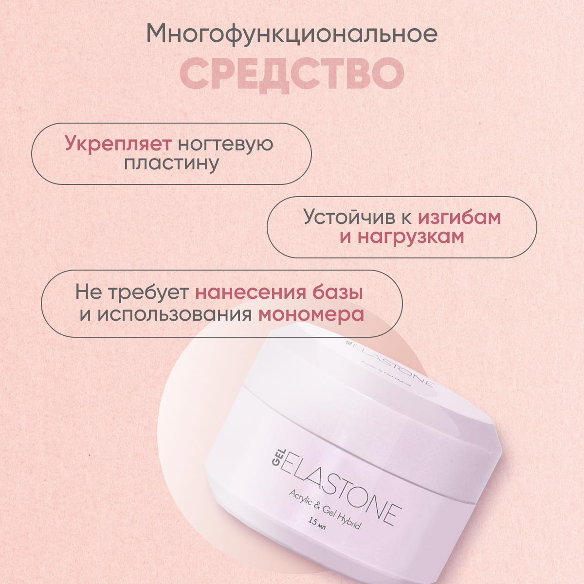 Гибрид акрила и геля ELASTONE GEL, 15 мл №3949 (прозрачно-розовый)