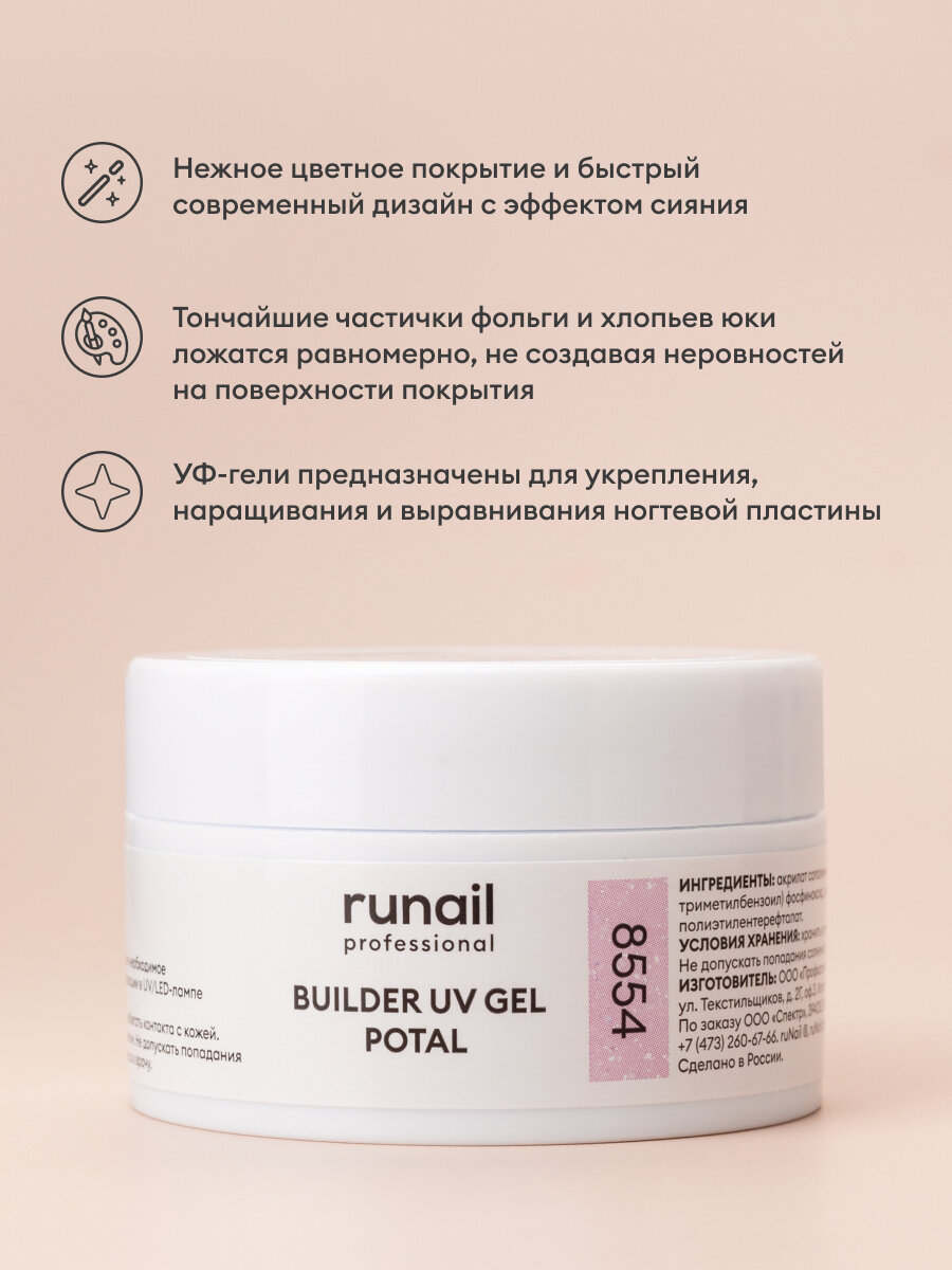 RuNail, BUILDER UV GEL POTAL - моделирующий УФ-гель с поталью №8554, 15 гр