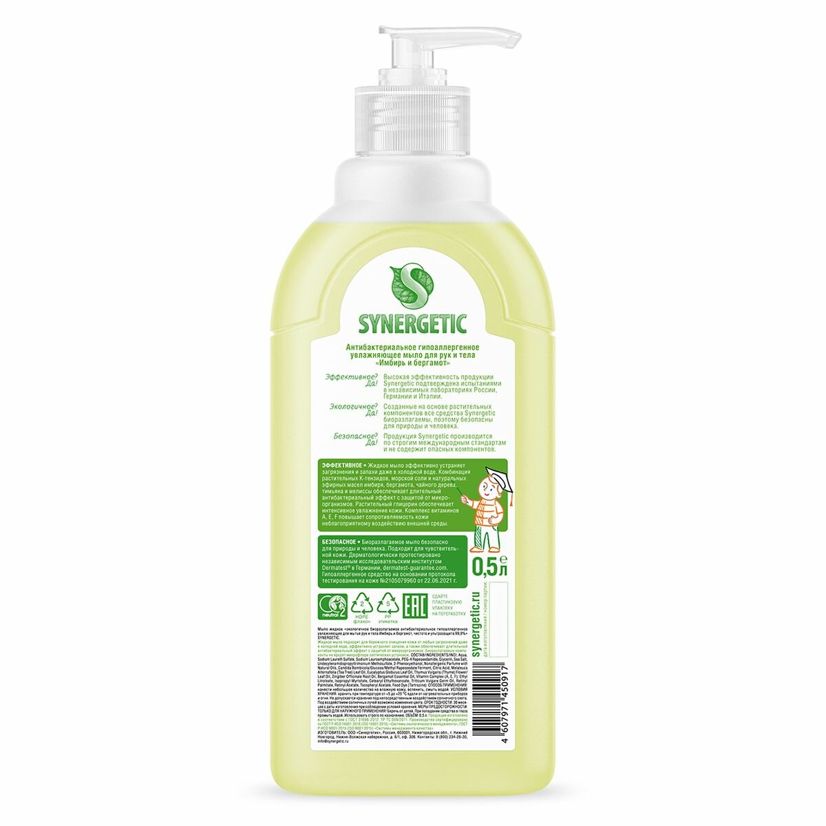 Жидкое мыло Synergetic Имбирь и бергамот антибактериальное 500ml 4607971450917