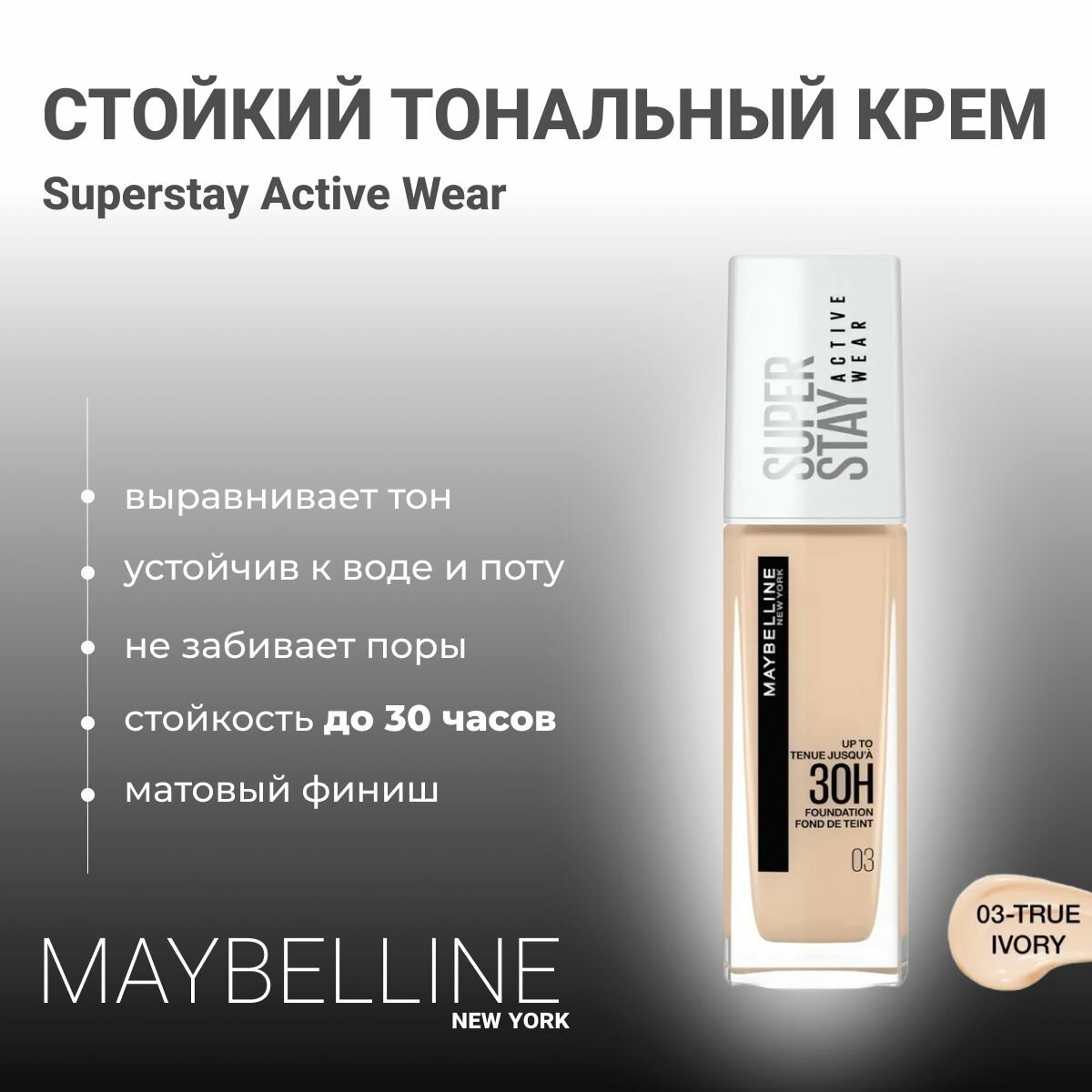 Maybelline New York - Super Stay Active Wear Стойкий Тональный крем 30ч, тон 07 слоновая кость