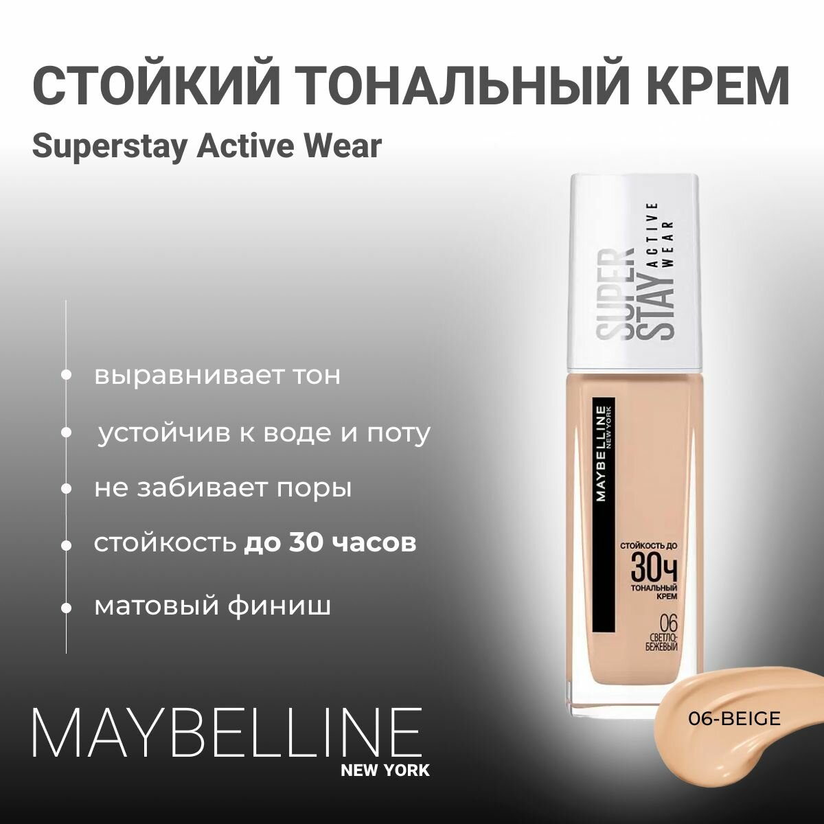 Maybelline New York Тональный крем Super Stay Active Wear 30h, 30 мл, оттенок: 06 светло-бежевый