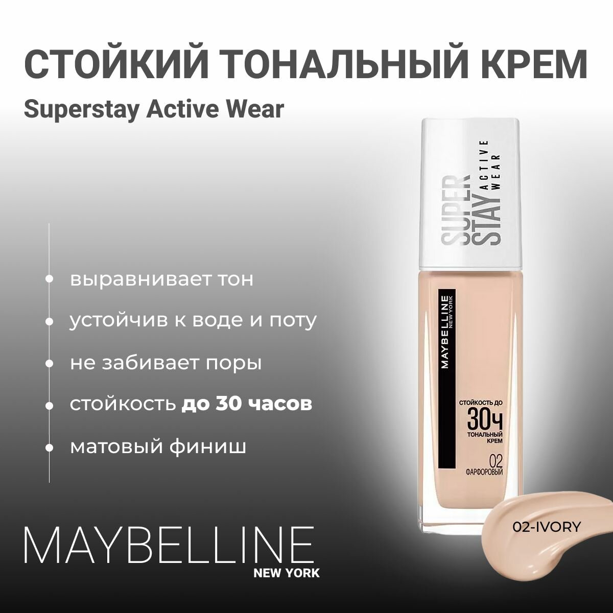 Maybelline New York - Super Stay Active Wear Стойкий Тональный крем 30ч, тон 02 фарфоровый