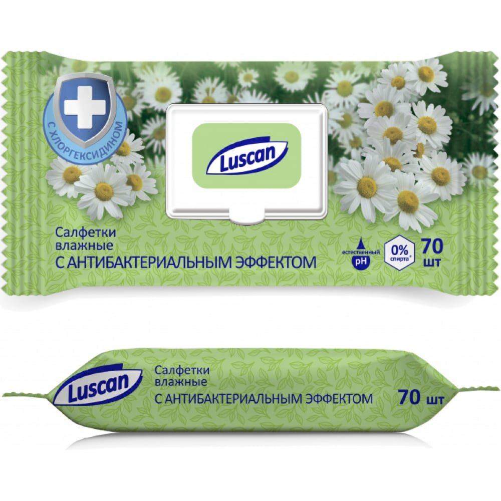 Luscan Салфетки влажные Антибактериальные, 70 шт