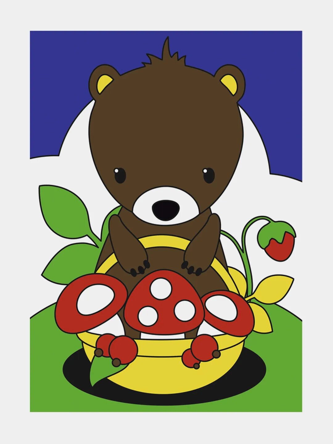 Картина по номерам для малышей Мишка с грибами 20х30 см, раскраска на картоне Ркн-050 LORI