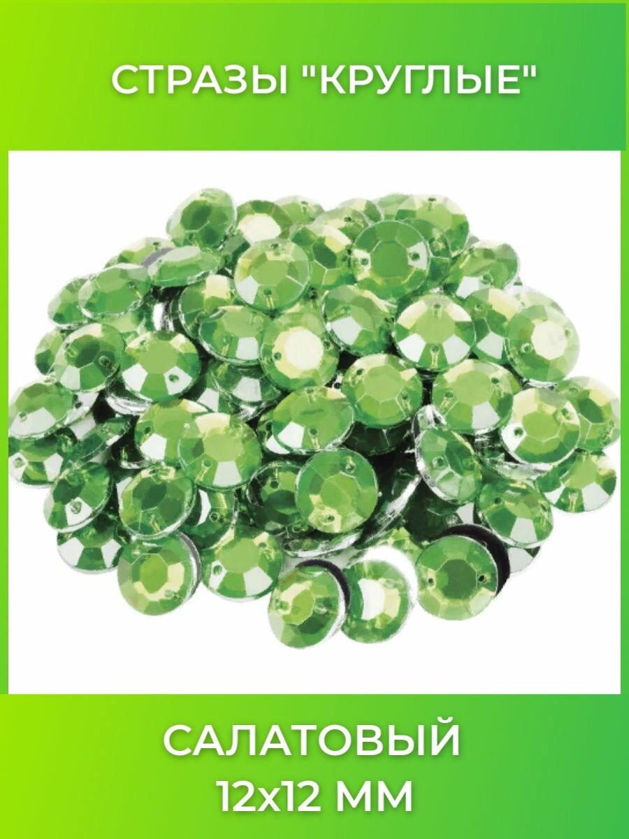 Стразы для творчества "Круглые", салатовый, 12 мм, 30 грамм, остров сокровищ, 661195 В комплекте: 5шт.