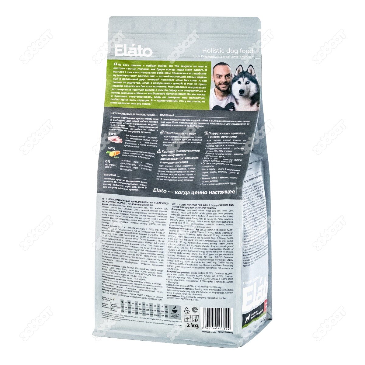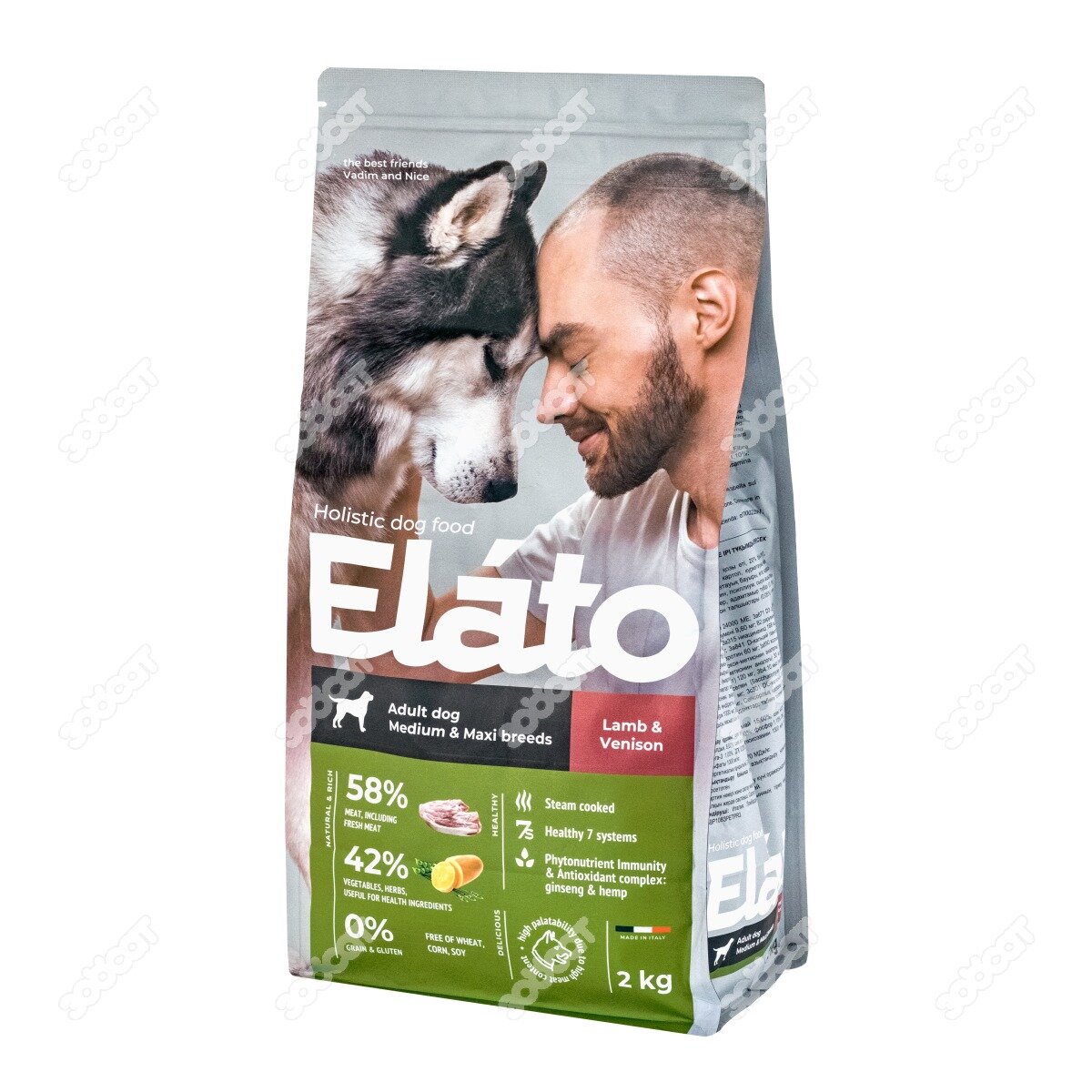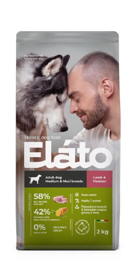 Elato Holistic корм для взрослых собак средних и крупных пород с ягненком и олениной, 2кг