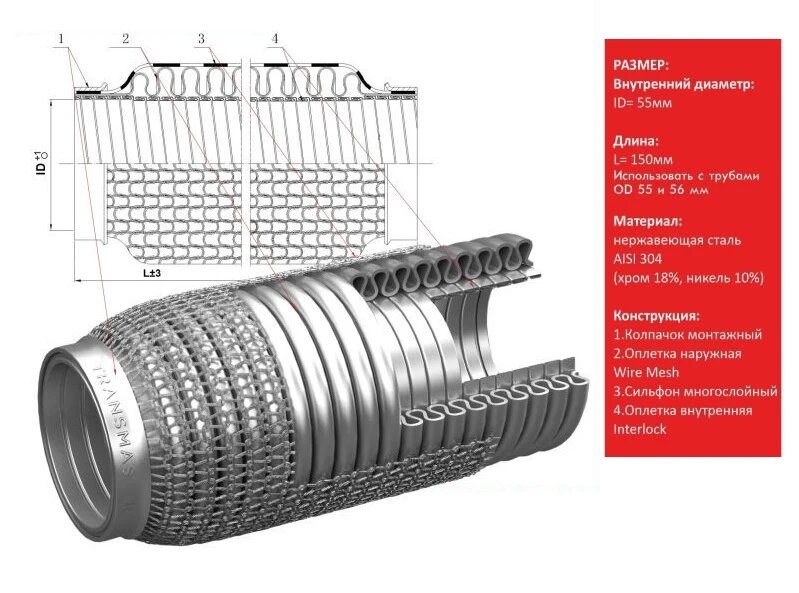 Гофра Усиленная 3-Сл. (304 Сталь) 55/150S/85595 TRANSMASTER UNIVERSAL арт. 55150S