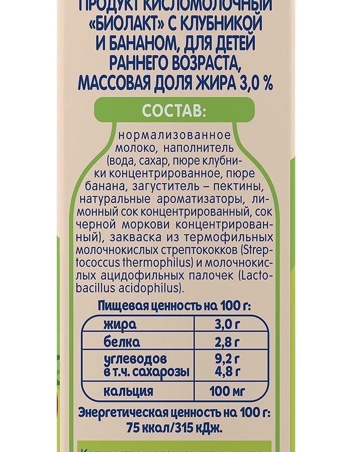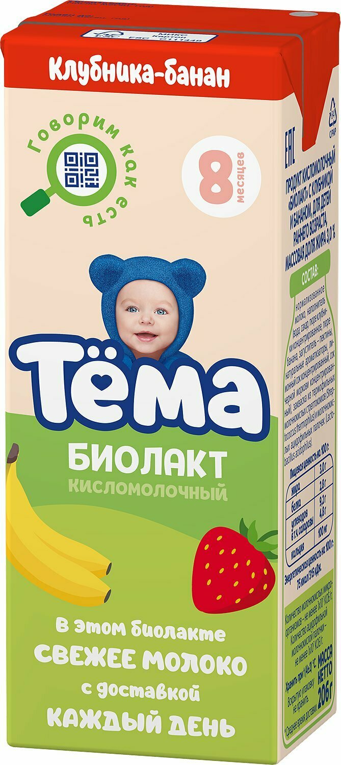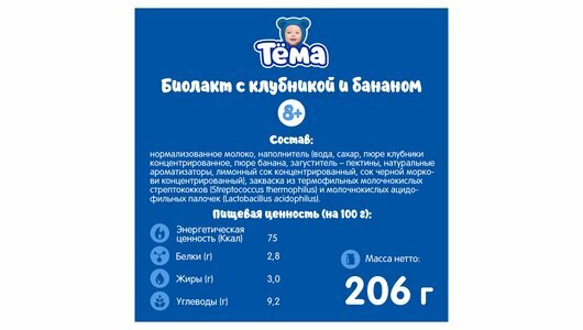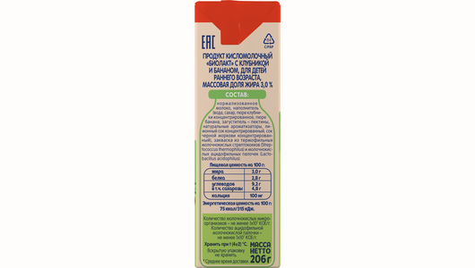 Биолакт детский тема Клубника, банан 3%, без змж, 206г интересное: