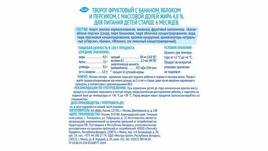 Творог детский агуша Яблоко, персик, банан 4%, без змж, 80г интересное: