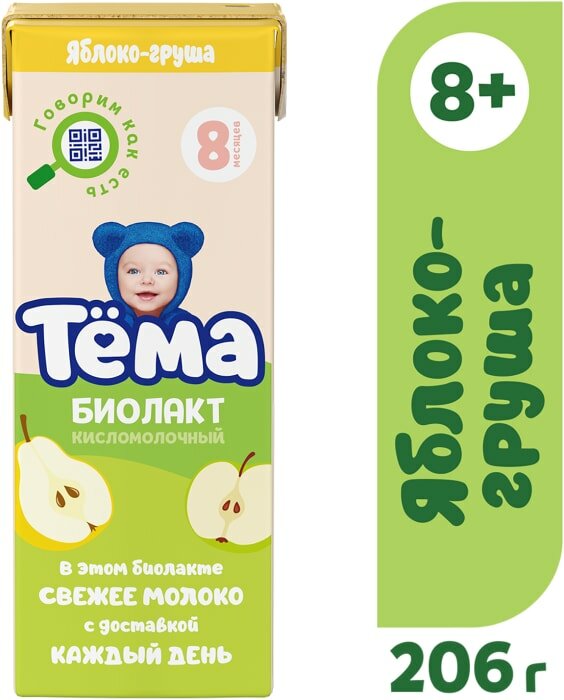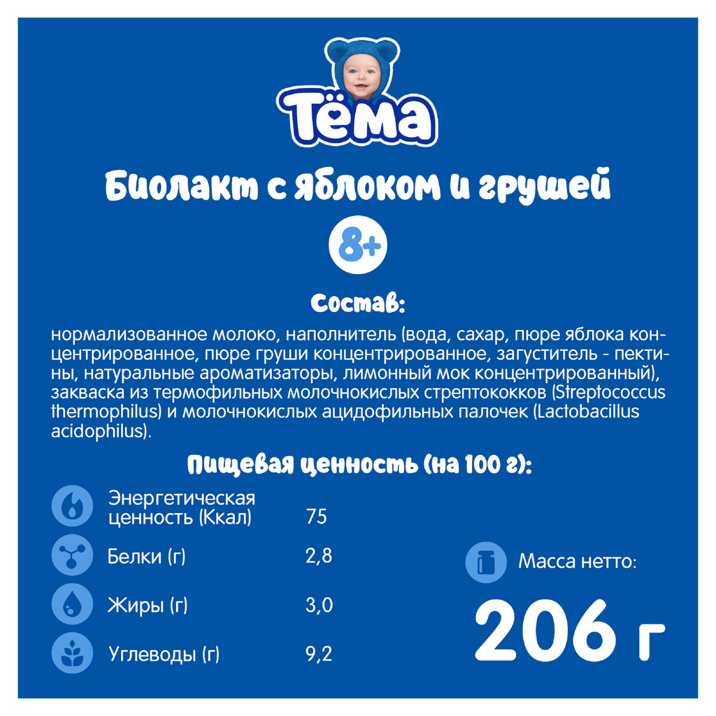 Биолакт детский тема Яблоко, груша 3%, без змж, 206г интересное: