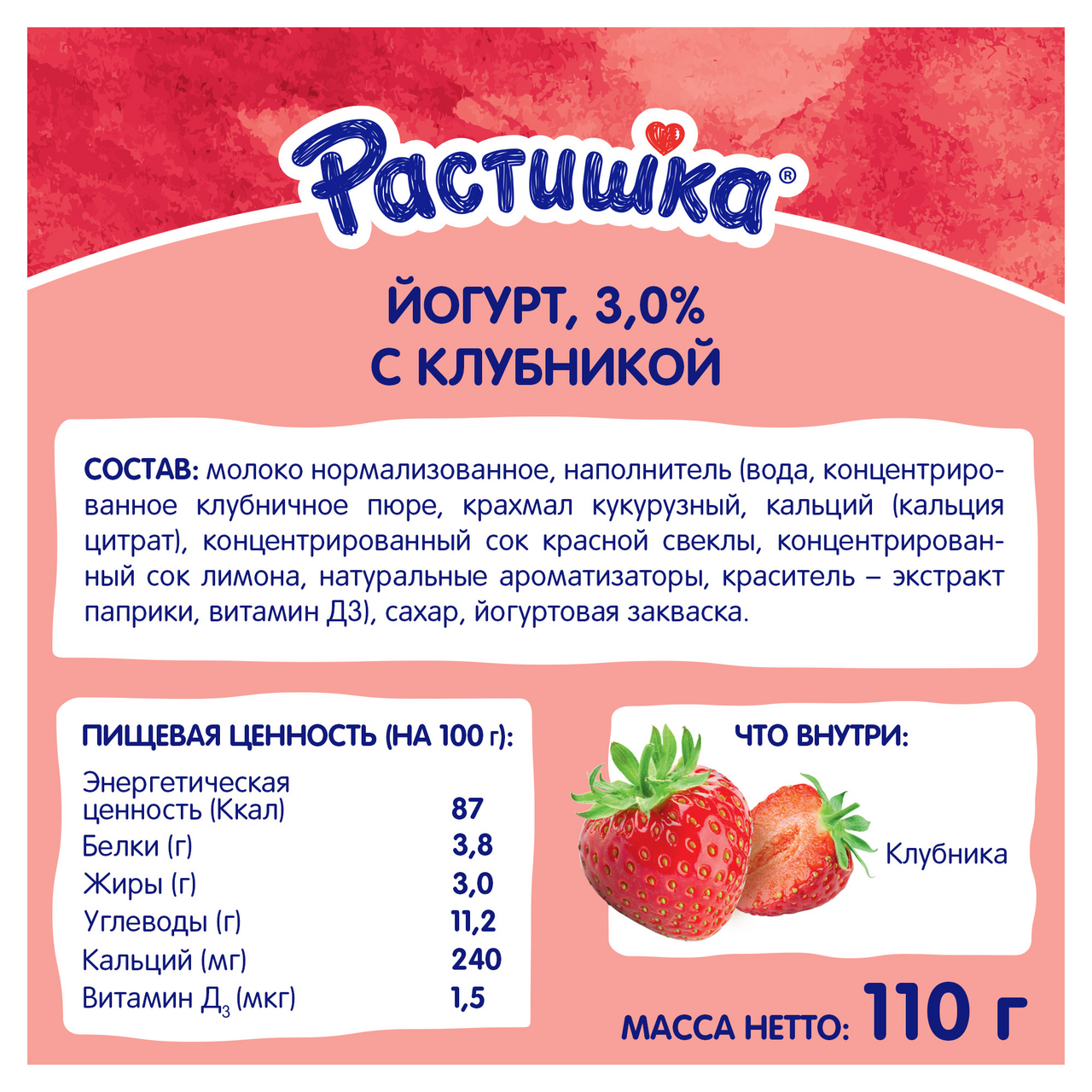 Йогурт детский Растишка клубника с 3 лет 3% бзмж 110 г интересное: