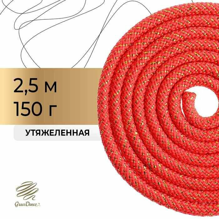 Grace Dance Скакалка гимнастическая утяжелённая с люрексом, 3 м, 180 г, цвет красный/золото