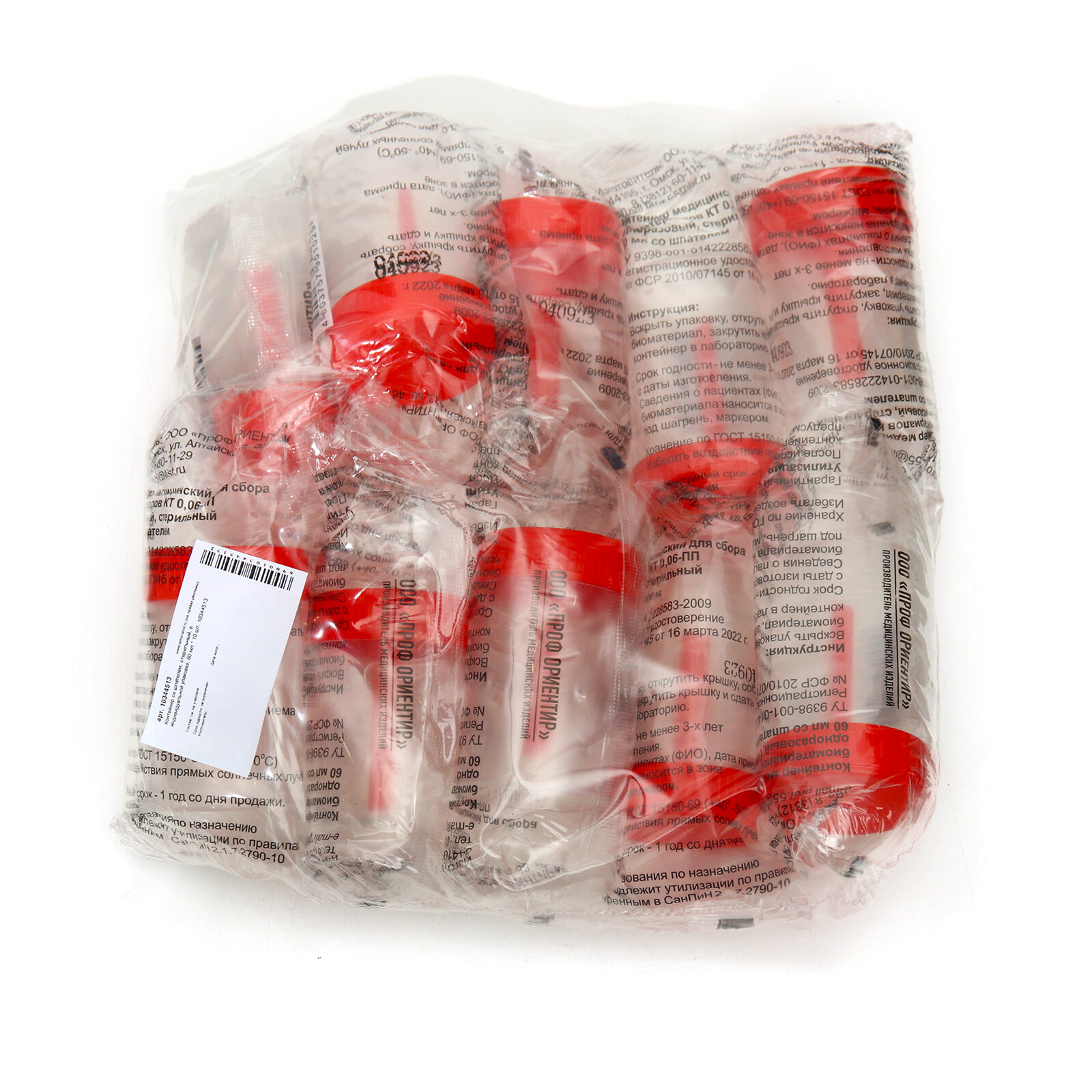 Контейнер со шпателем, стерильный, в индивидуальной упаковке, 60 мл * 10 шт.