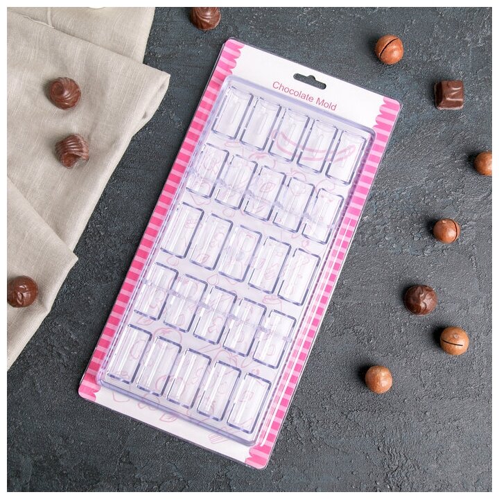 Форма для шоколада и конфет KONFINETTA «Плитка», 33×16,5×3 см, 60 ячеек, цвет прозрачный