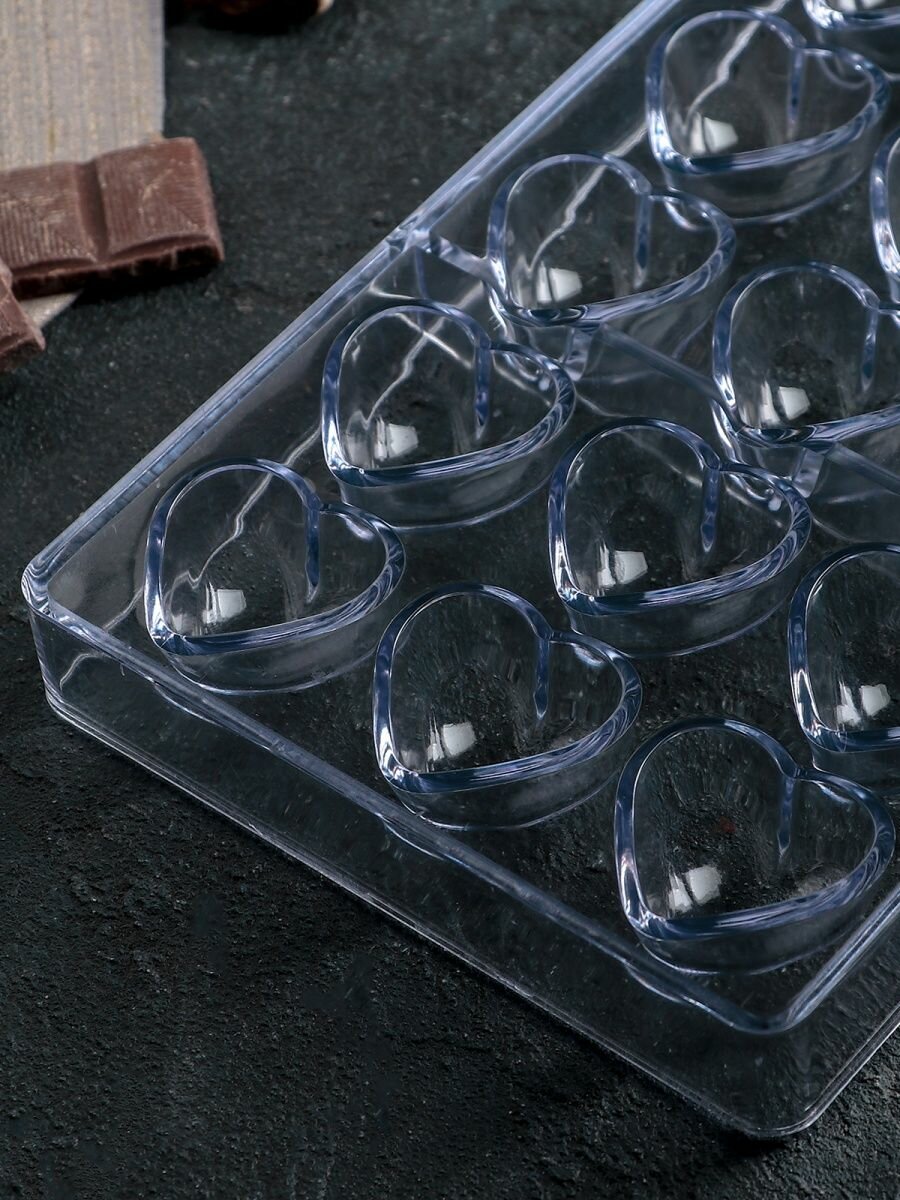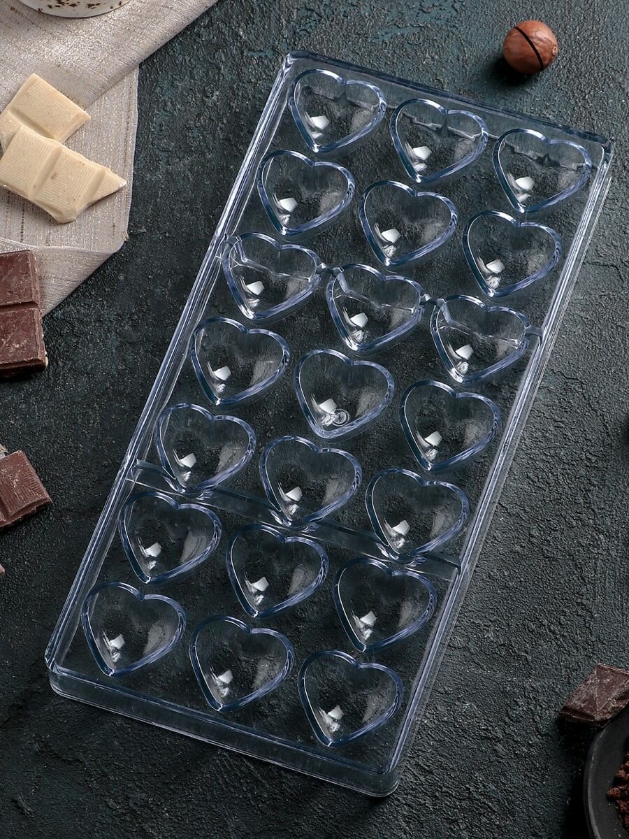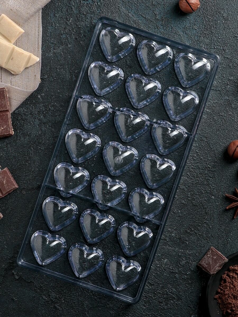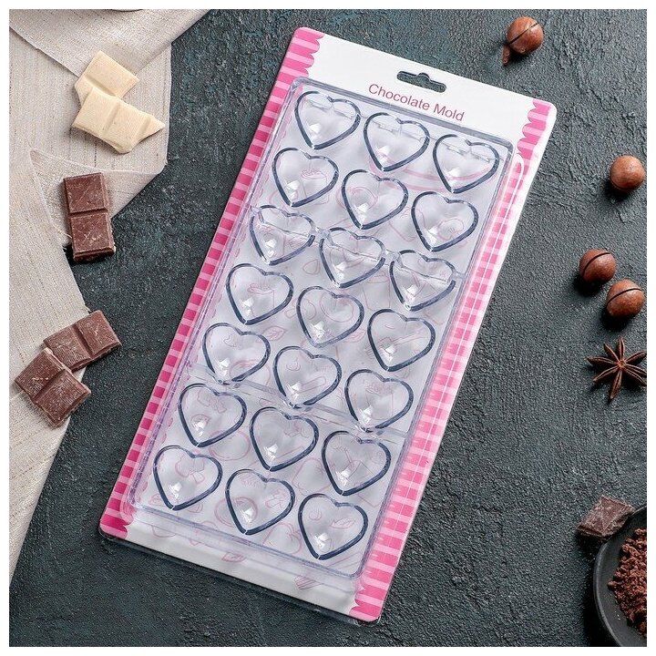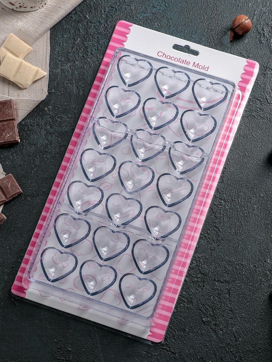 Купить Форма для шоколада и конфет Сердца, 28х14 см, 21 ячейка, ячейка 2х3 см