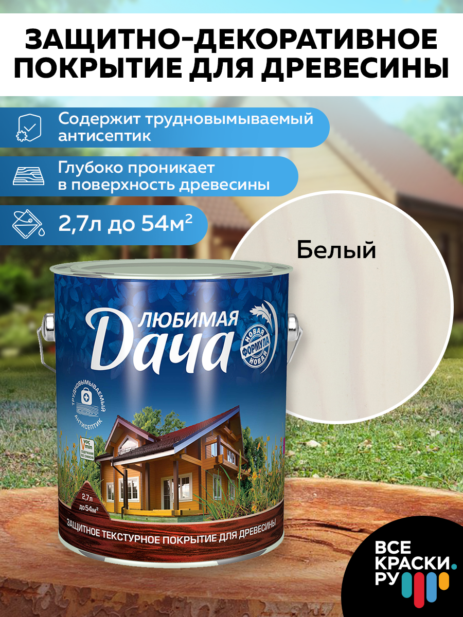 Купить Антисептик Любимая Дача 2.7л Белый Защитно-Декоративное Покрытие для Древесины.