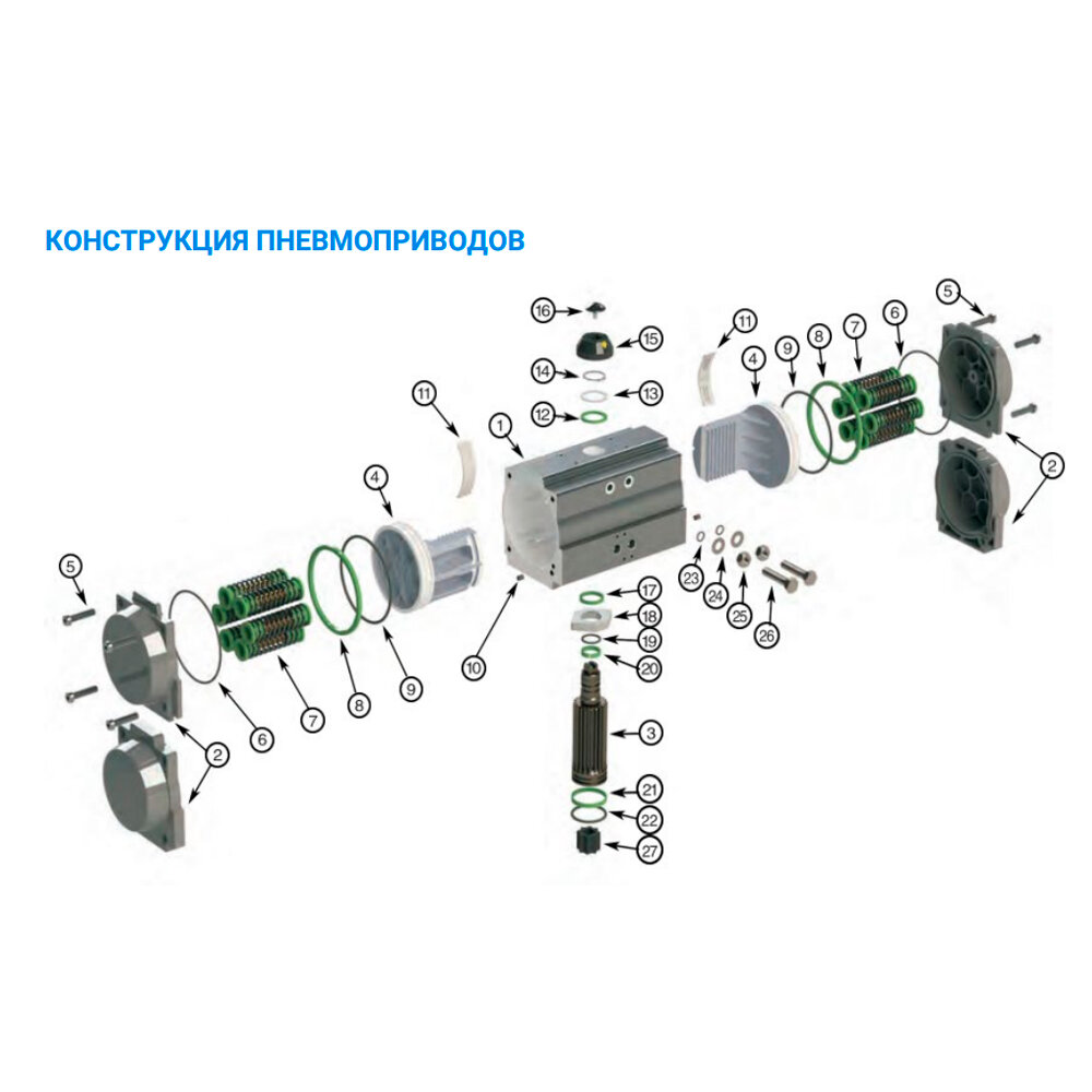 Затвор дисковый поворотный DN.ru GGG50-GGG40-EPDM Ду80 Ру16, с пневмоприводом DN.ru SA-083 с возвратными пружинами