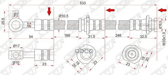 Шланг тормозной перед (Таиланд) NISSAN TEANA 08- LH SAT ST-46211-JN20B | цена за 1 шт