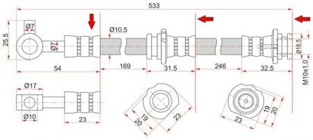 Шланг тормозной передний/задний TMI TATSUMI TCJ1043