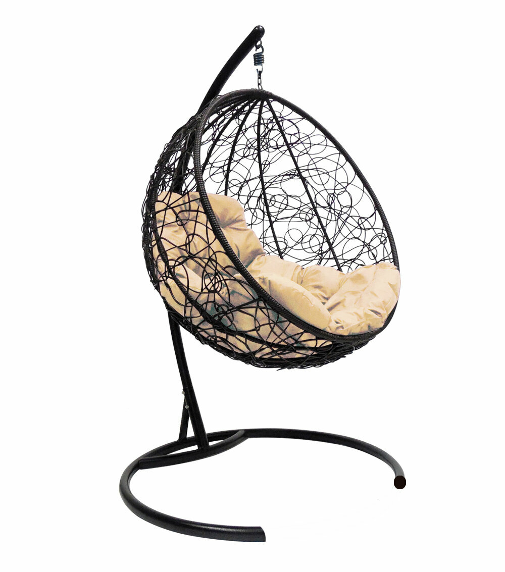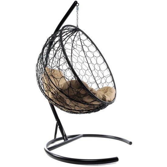 Подвесное кресло кокон M-group Круг ротанг черное+бежев подуш
