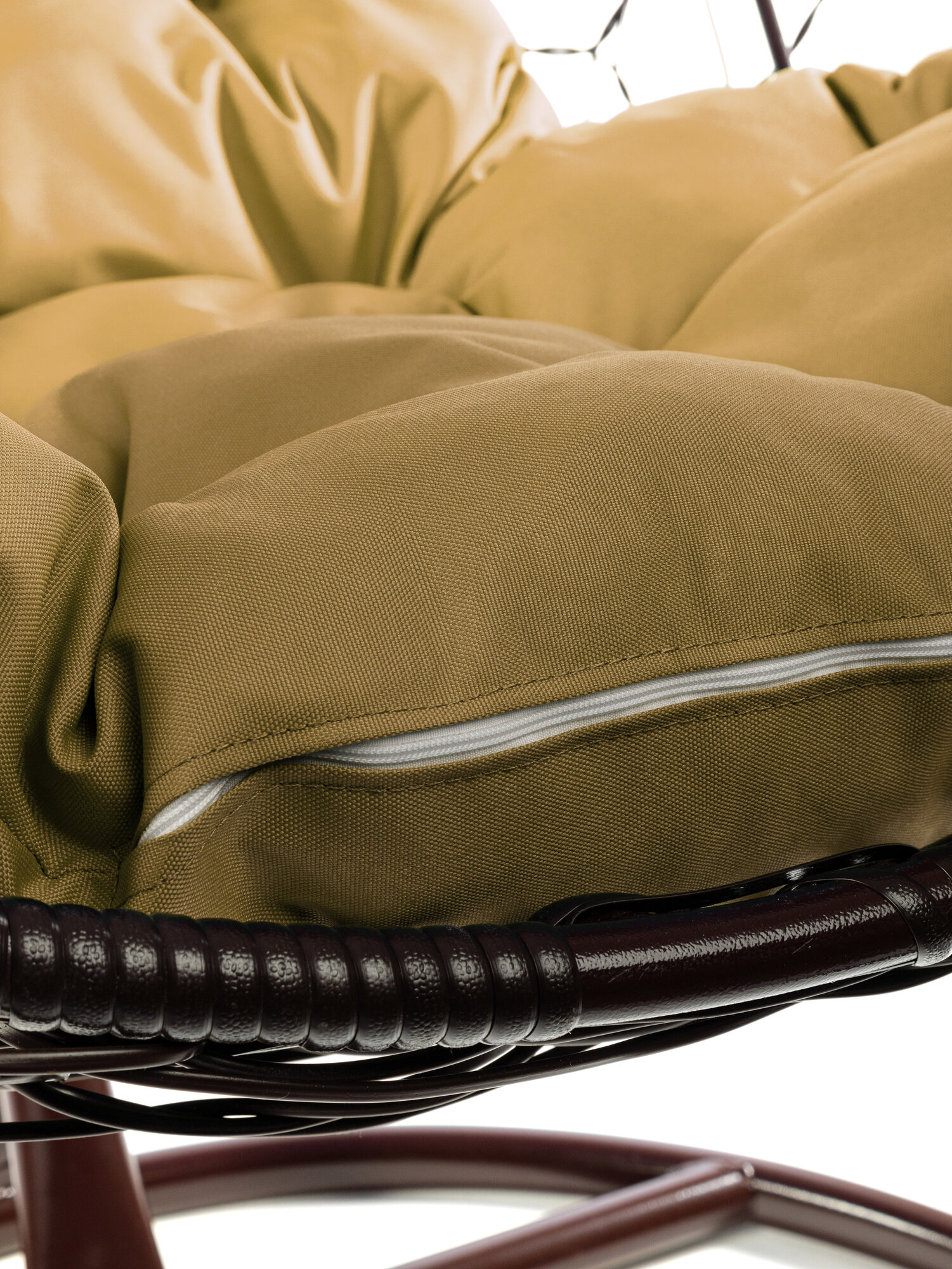Подвесное кресло m-group круглый ротанг коричневое, бежевая подушка