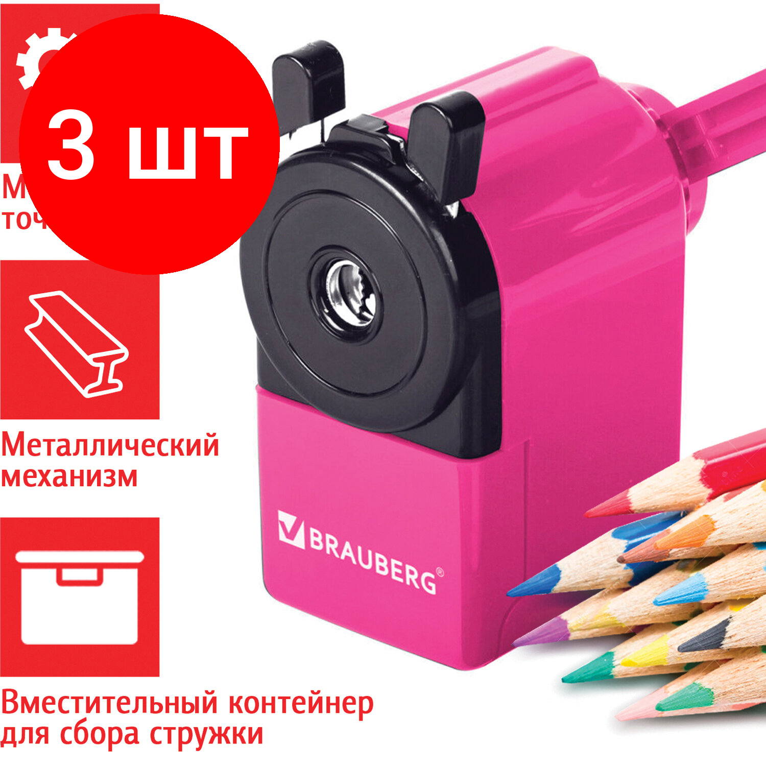 СохранитьКомплект 3 шт, Точилка механическая BRAUBERG "JET", металлический механизм, корпус розовый, 229568 интересное:
