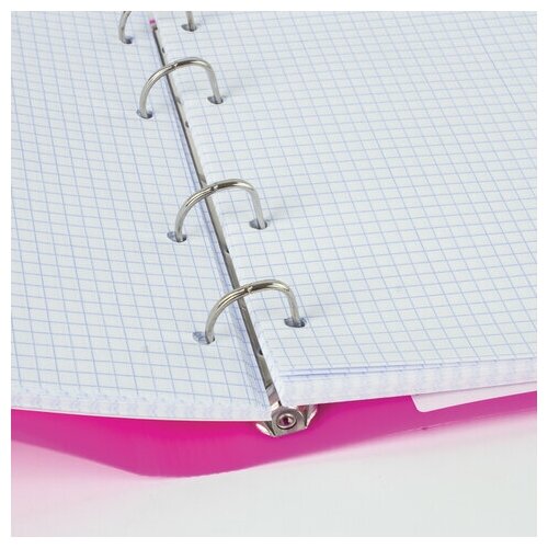 Тетрадь на кольцах А5 175×220 мм, 120 л., пластик, клетка, с резинкой, BRAUBERG, розовая, 403572