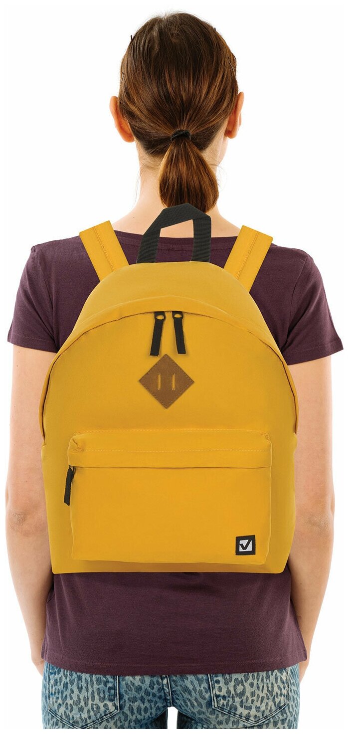 Рюкзак (ранец) женский, мужской, школьный, подростковый городской, один тон, Brauberg желтый, 20 л, 41х32х14 cм, 225378