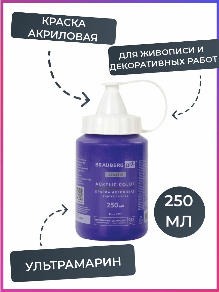 Brauberg Краска акриловая художественная 250 мл, BRAUBERG ART CLASSIC, Ультрамарин