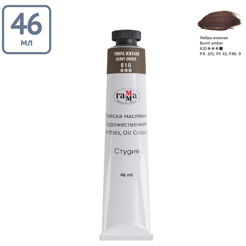Купить Краска масляная художественная Гамма "Студия", туба 46мл, умбра жженая (0.00.А046.610)