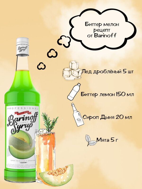 Сироп Barinoff Дыня (для коктейлей, десертов, лимонада и мороженого), 1л