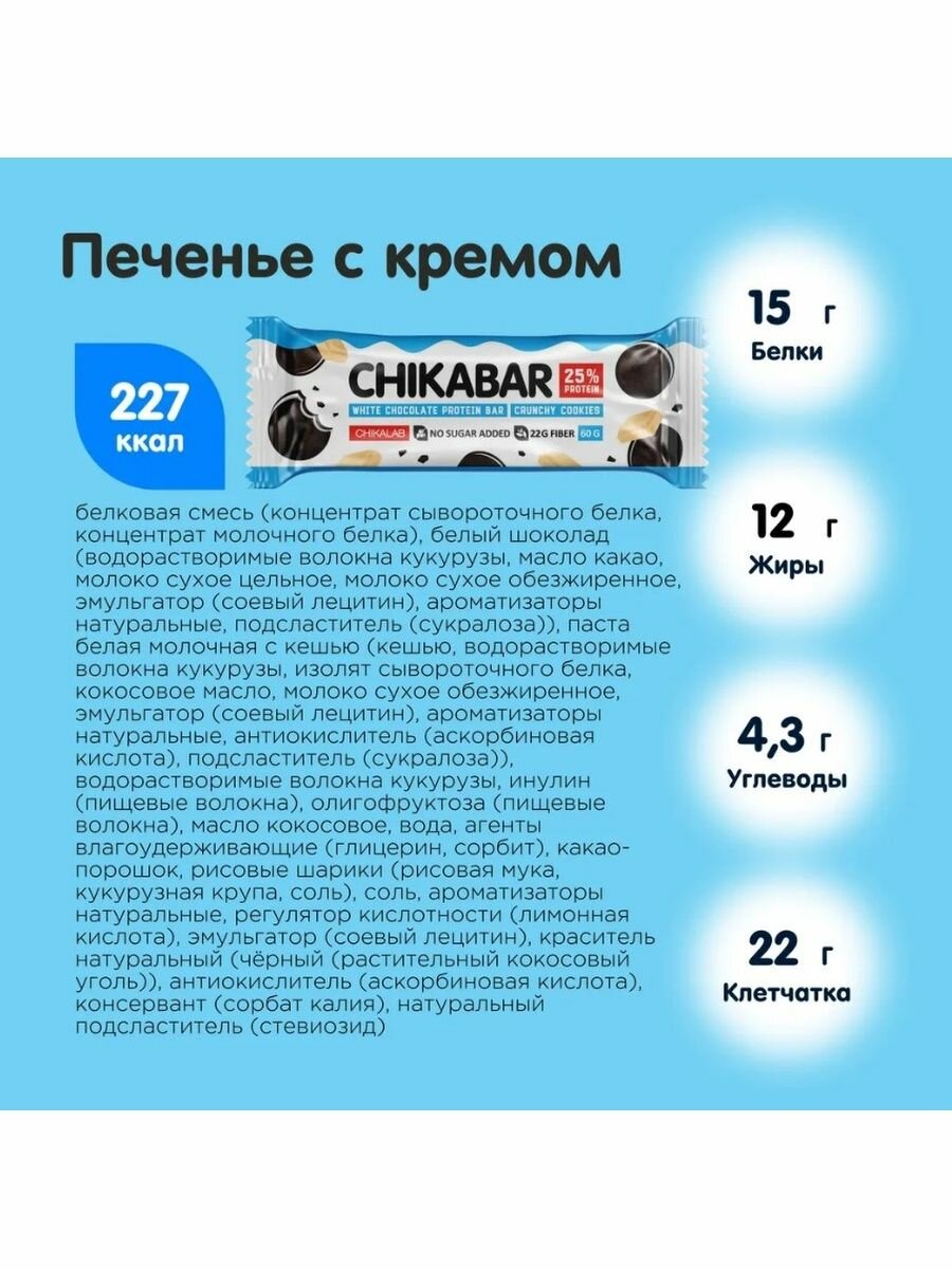 Купить Протеиновый батончик Chikalab Chikabar 20 шт x 60 г, Печенье с кремом