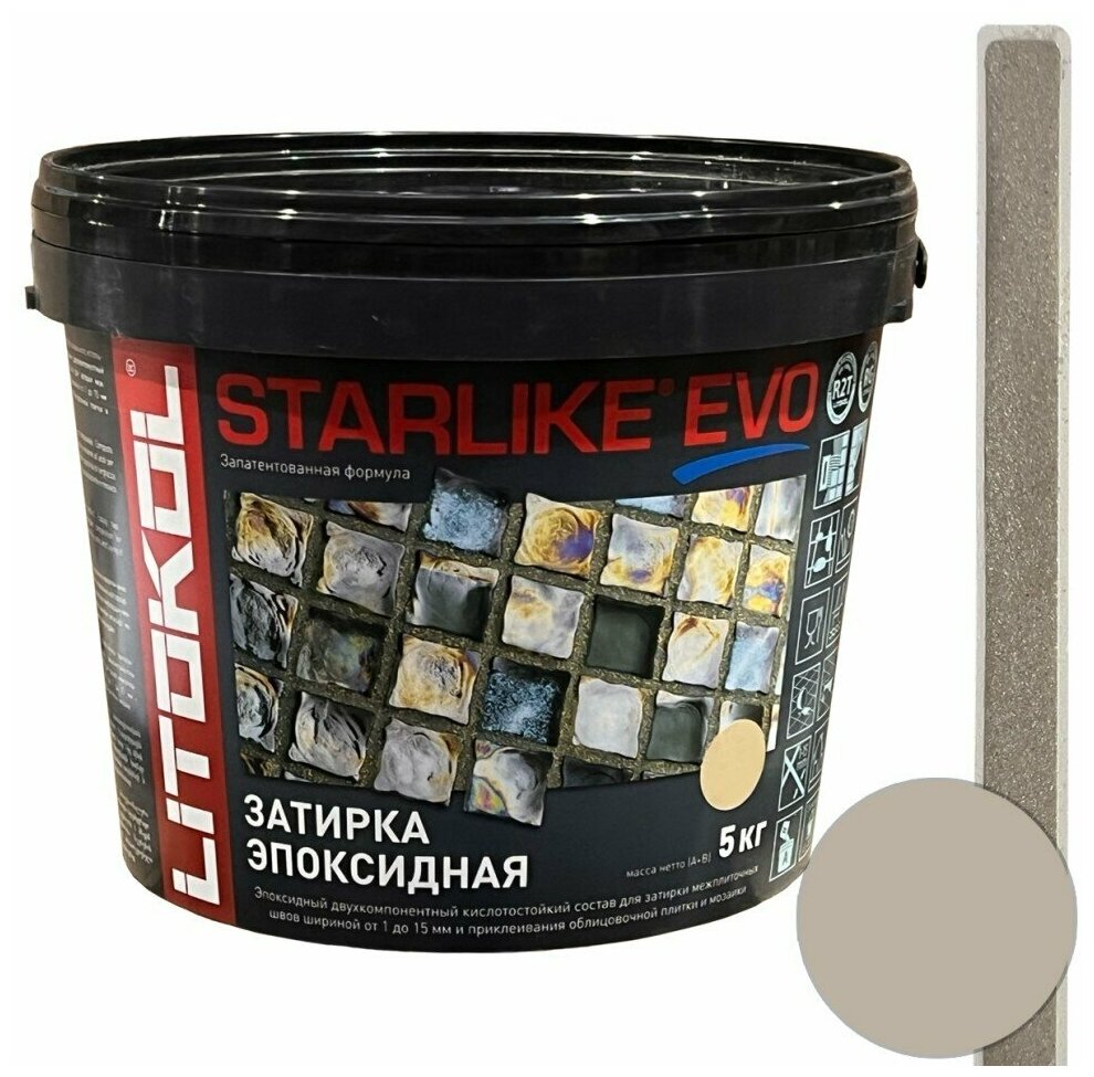 Затирка для плитки двухкомпонентная на эпоксидной основе Litokol Starlike EVO (5кг) S.208 sabbia