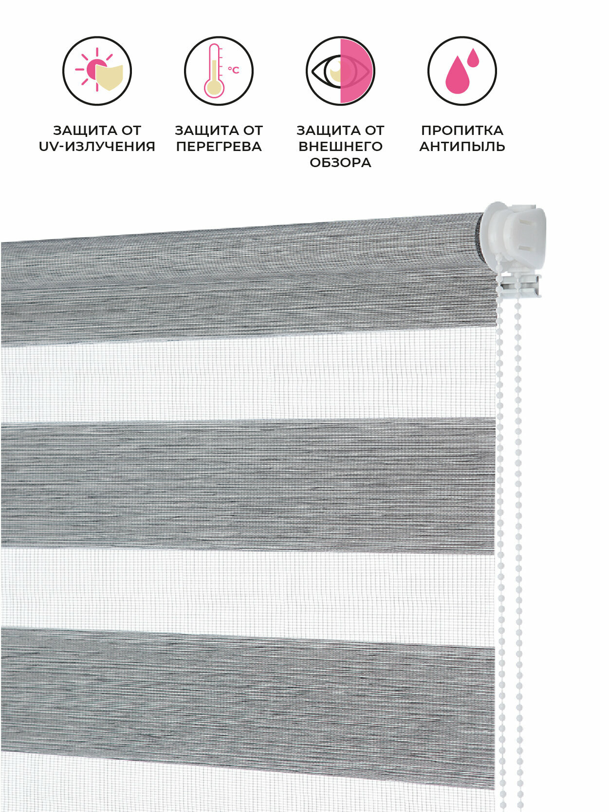 Рулонные шторы день ночь Бейс Серый DECOFEST 40 см х 160 см, жалюзи на окно