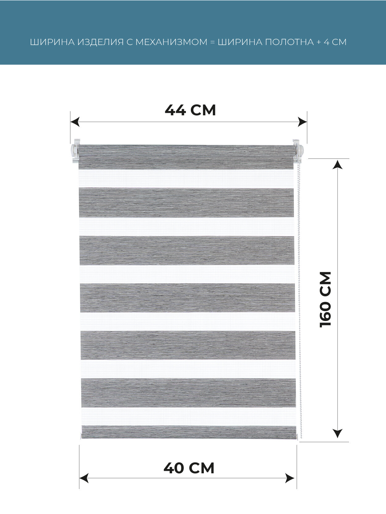 Рулонные шторы день ночь Бейс Серый DECOFEST 40 см х 160 см, жалюзи на окно