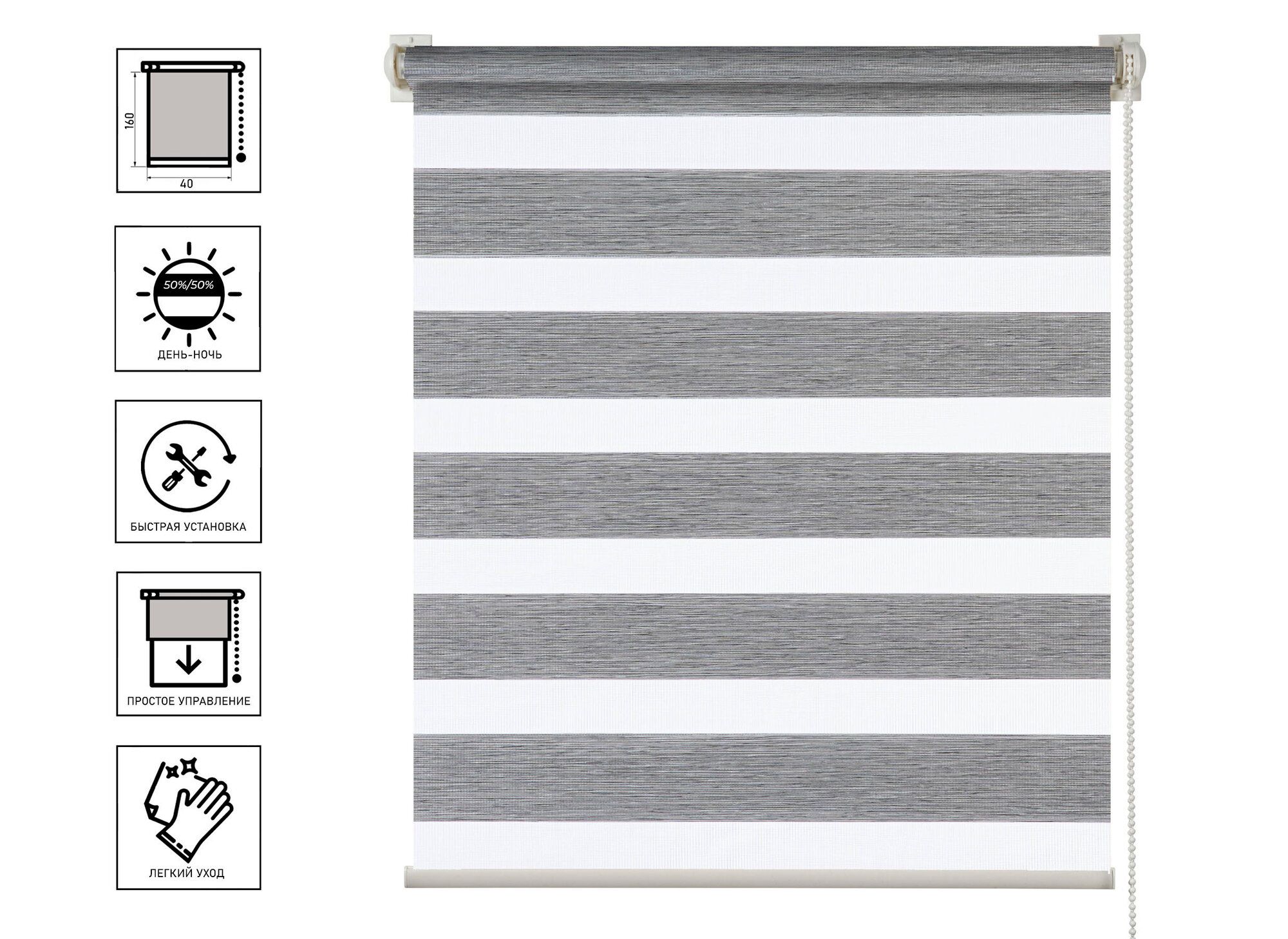 Рулонные шторы день ночь 40 см х 160 см Серый Бейс DECOFEST