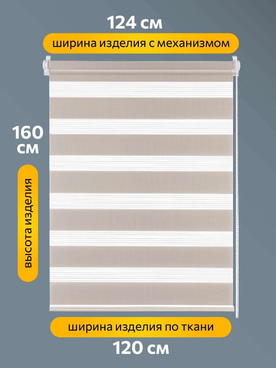 Рулонные шторы день ночь 120 см х 160 см Эко-бежевый Бейс DECOFEST