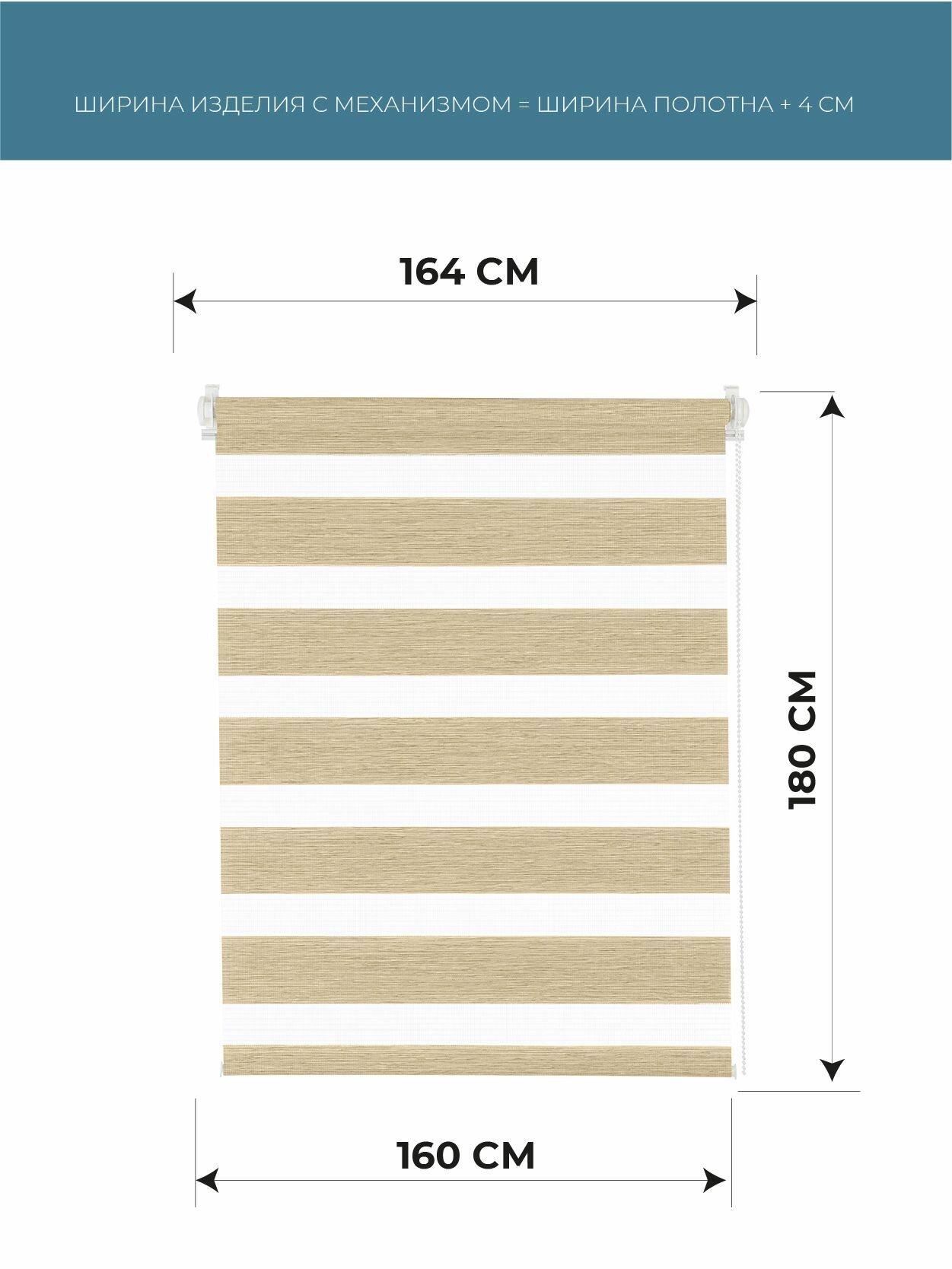 Купить Рулонные шторы день ночь Жаккард Бежевый DECOFEST 160 см на 180 см, жалюзи на окна