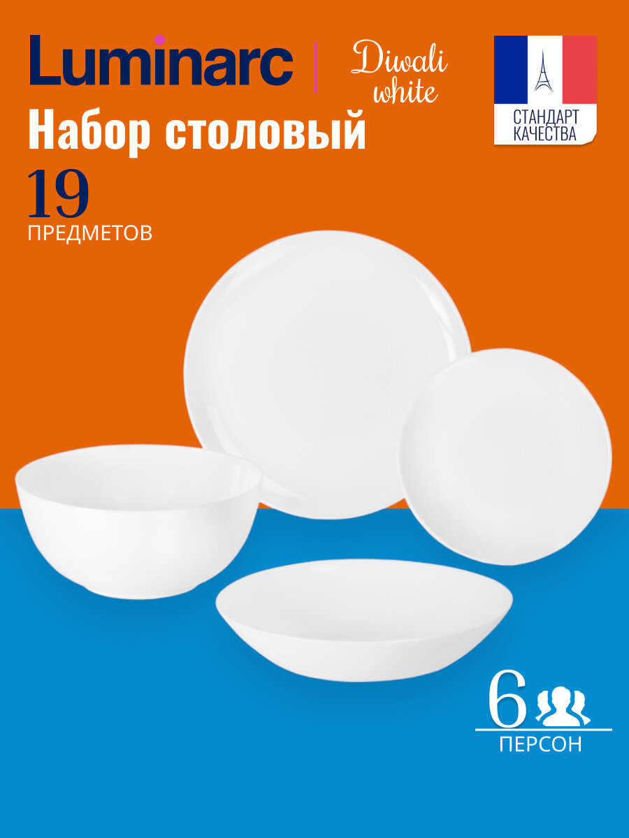 Столовый сервиз Luminarc Diwali H5869/P2920/P2947/P2961, 6 персон, 19 предм.