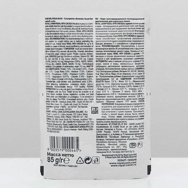 Royal Canin RENAL WITH CHICKEN (ренал С курицей) Пауч 85 г).Цена за упаковку, в упаковке 6шт(6х85).