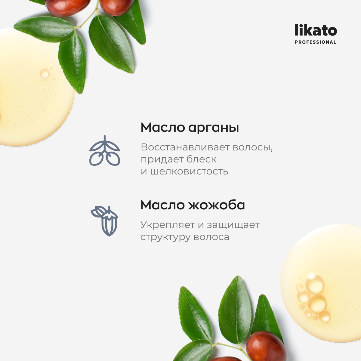| Масла и экстракты | аргановое масло / масло жожоба / масло макадамии |