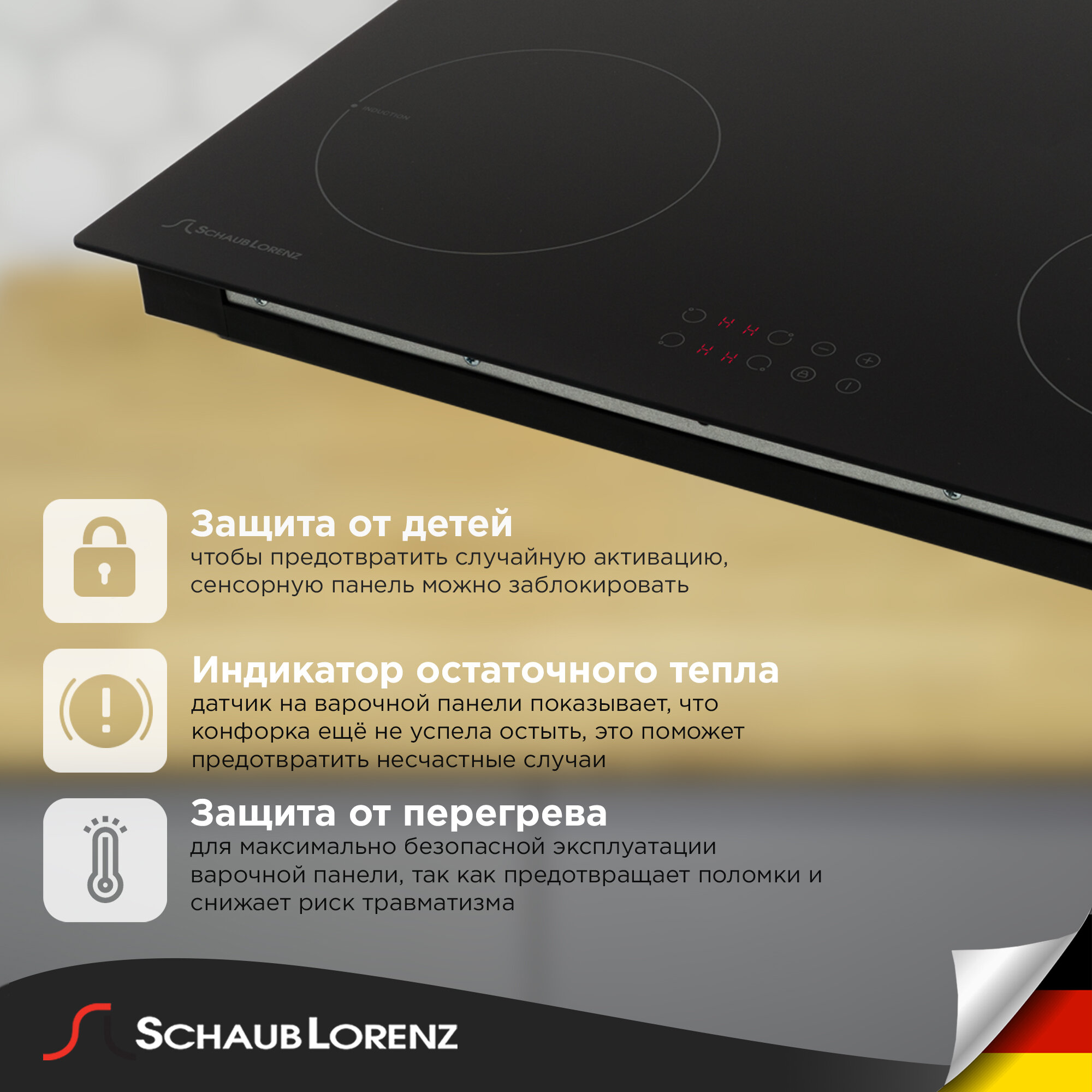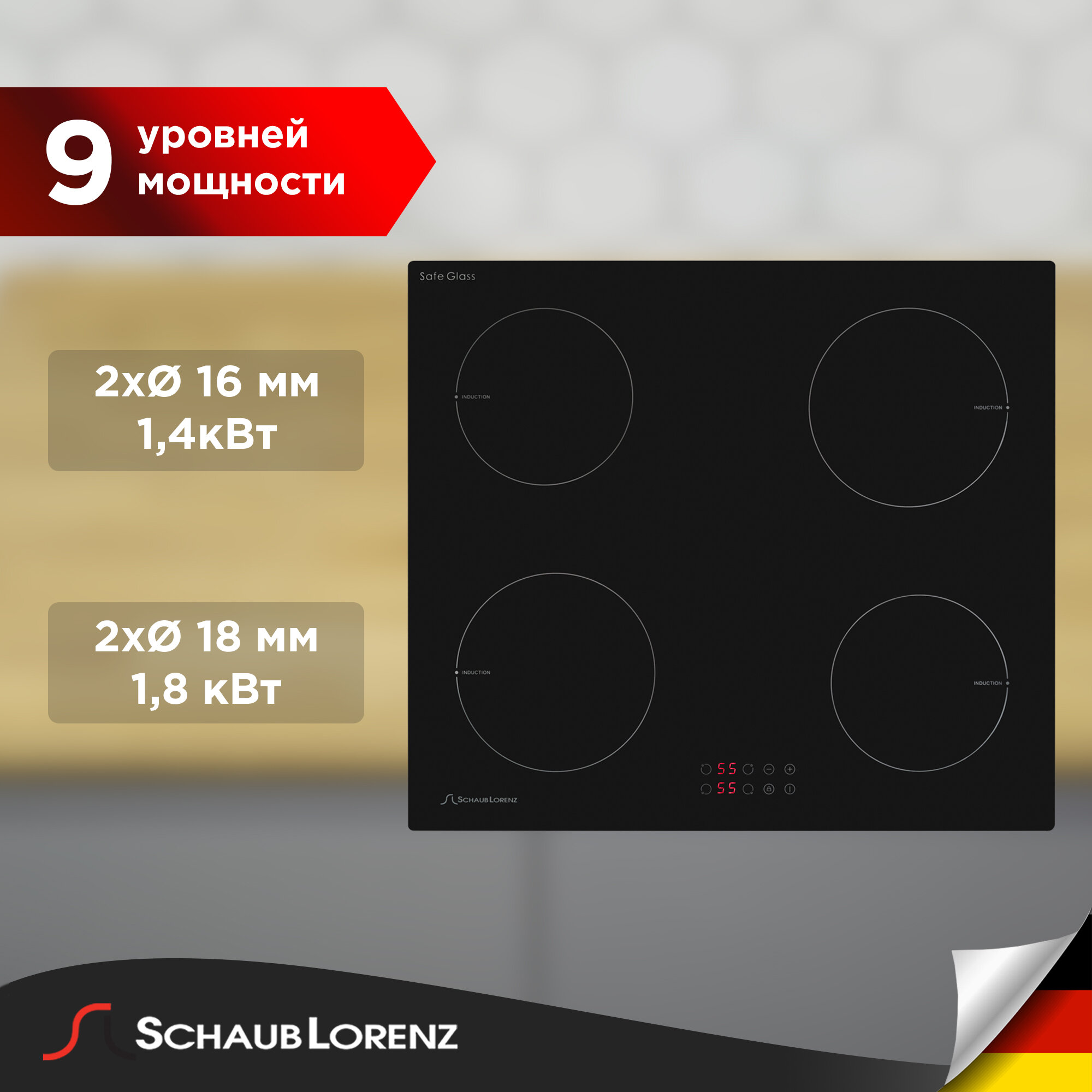 Индукционная встраиваемая варочная панель Schaub Lorenz SLK IY 60 T5, 60см, стеклокерамика Safe Glass, зона нагрева повышенной мощности, системы безопасности
